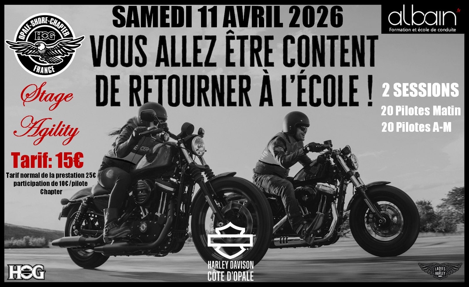 Opale Shore Chapter 64 Bd de la liane, St Léonard, FranceParticipants: 4 / 40Evénement stage Agility Albain Le 11 avril, venez essayer les parcours en configuration examen du permis moto. 3 parcours dont 1 lent, 1 rapide sur les motos de […]